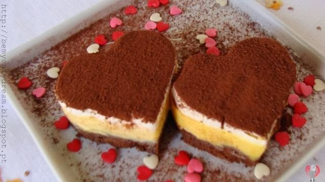 INGREDIENTES:1 embalagem de bolo de nozes ou chocolate, cortado em fatias1 receita de creme de gemas (1 lata de leite condensado, 4 gemas de ovos peneiradas, 200g de creme de leite UHT)1 receita de creme nevado (4 claras em neve, 6 colheres de sopa de açúcar, 1 caixa de creme de leite gelado UHT, baunilha a gosto)Cacau em pó ou raspas de chocolate para decorarMiniaros no formato coração para montagemMODO DE PREPARO:Creme de gemasEm uma panela misture o leite condensado com as gemas peneiradas. Junte o creme de leite e misture até ficar homogêneo. Leve ao fogo médio misturando constantemente por 4 minutos após início da fervura.Creme nevadoMisture as claras com o açúcar e leve ao fogo em banho Maria para amornar. Bata em batedeira até formar um suspiro firme. Acrescente o creme de leite, a baunilha e mexa delicadamente.MontagemColoque as fatias de bolo em mini aros. Disponha o creme de gemas, cubra com o creme nevado e a decoração a gosto. Leve ao freezer por 4 horas. Desenforme e sirva geladoRendimento: 12 porçõesGrau de dificuldade: médioTempo de preparo: 1 hora